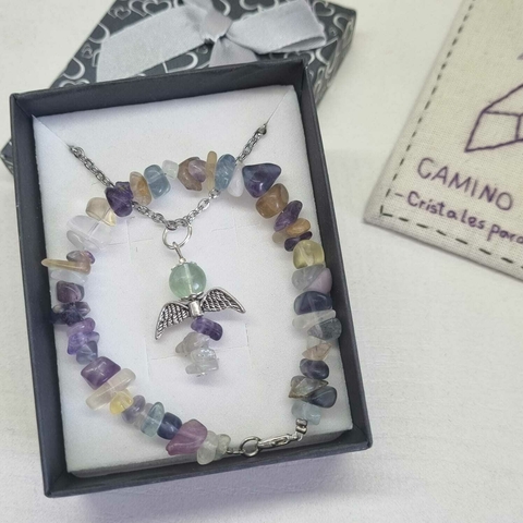 CONJUNTO ANGELITO FLUORITA ARCOÍRIS